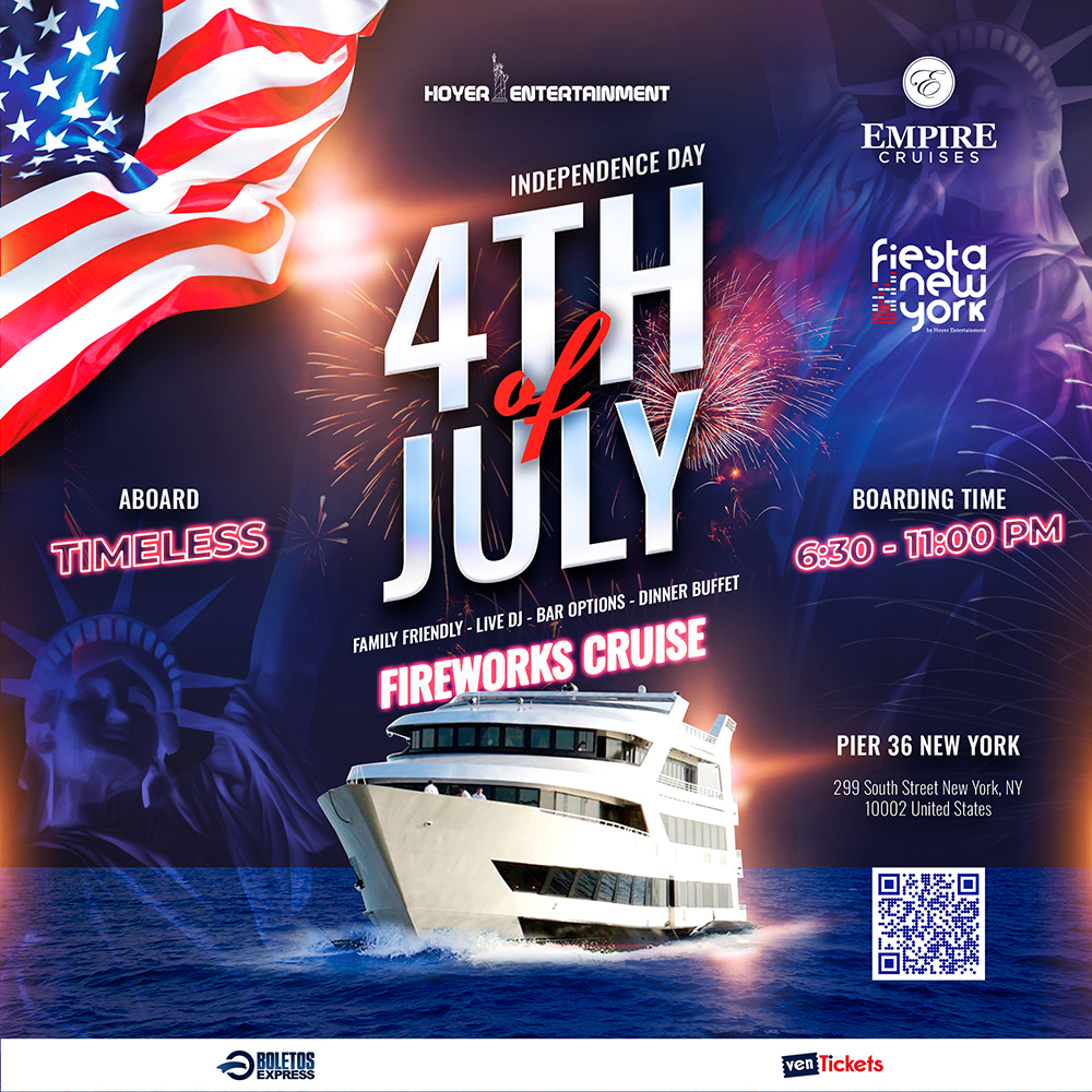 ¡Sube a bordo de nuestro barco de fuegos artificiales del 4 de julio para disfrutar de las mejores vistas del espectacular espectáculo de fuegos artificiales mientras navegas por el Hudson!